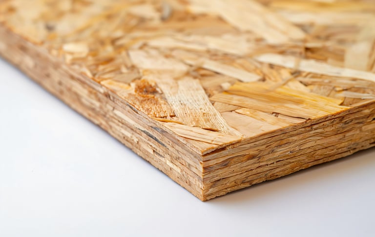 OSB, or Oriented Strand Board, is an engineered wood panel made from compressed layers of rectangular wood strands bonded together with adhesives. It is a strong, durable, and cost-effective building material used primarily for structural sheathing in walls, floors, and roofs, but also for furniture and other applications. The "oriented" nature comes from the way the wood strands are layered, with outer layers aligned longitudinally and inner layers often cross-oriented for enhanced strength and stiffness.